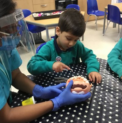 Reception welcomed a very important visitor on Friday. Rupal came to see us to tell us all about her job as a dentist. She taught us how to look after our teeth and how important it is to clean them very carefully. We will be completing a chart to show how careful we can be!