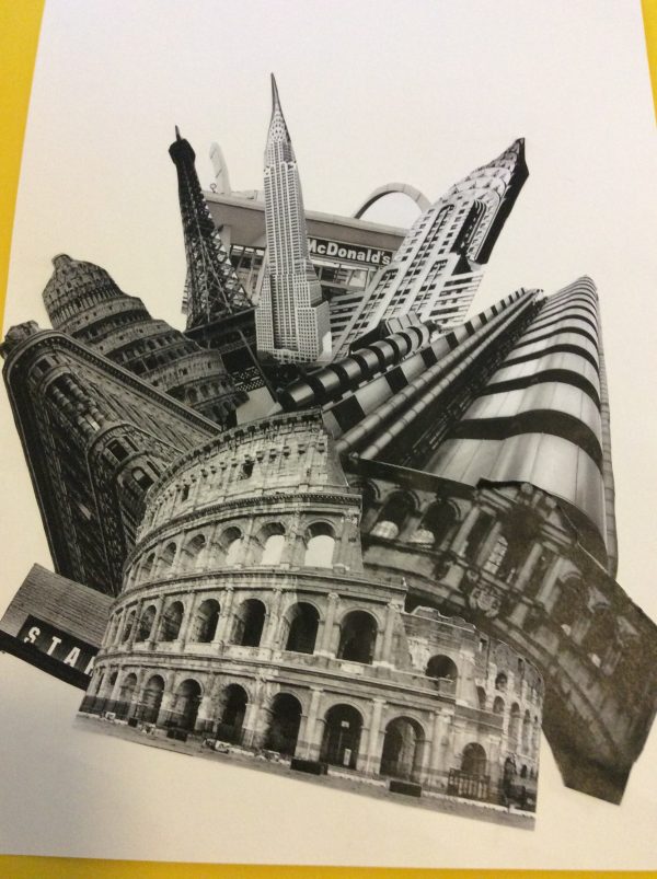 Year 8 have been studying architecture and the way structures are designed based on shape and form. Beomsik Wan was our influence to create layered photomontage compositions, exploring how to use perspective to create an interesting arrangement. Some amazing experiments by Year 8 and strong collaborative skills.