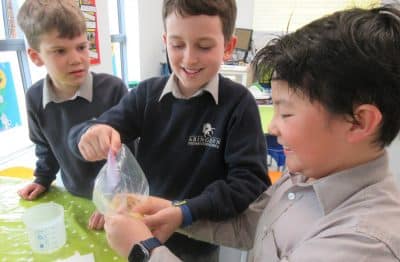 Our Year 4 pupils have been finding out how the digestive system works with a fun, practical experiment. Firstly, they took a plastic bag (to represent the stomach) and filled it with mashed up banana, some biscuits, juice and water (the gastric juices). Then, they transferred the mixture to a sieve, squashing and shaking it (representing the muscles in the small intestine contracting to move the food down and out of the body).