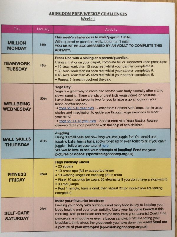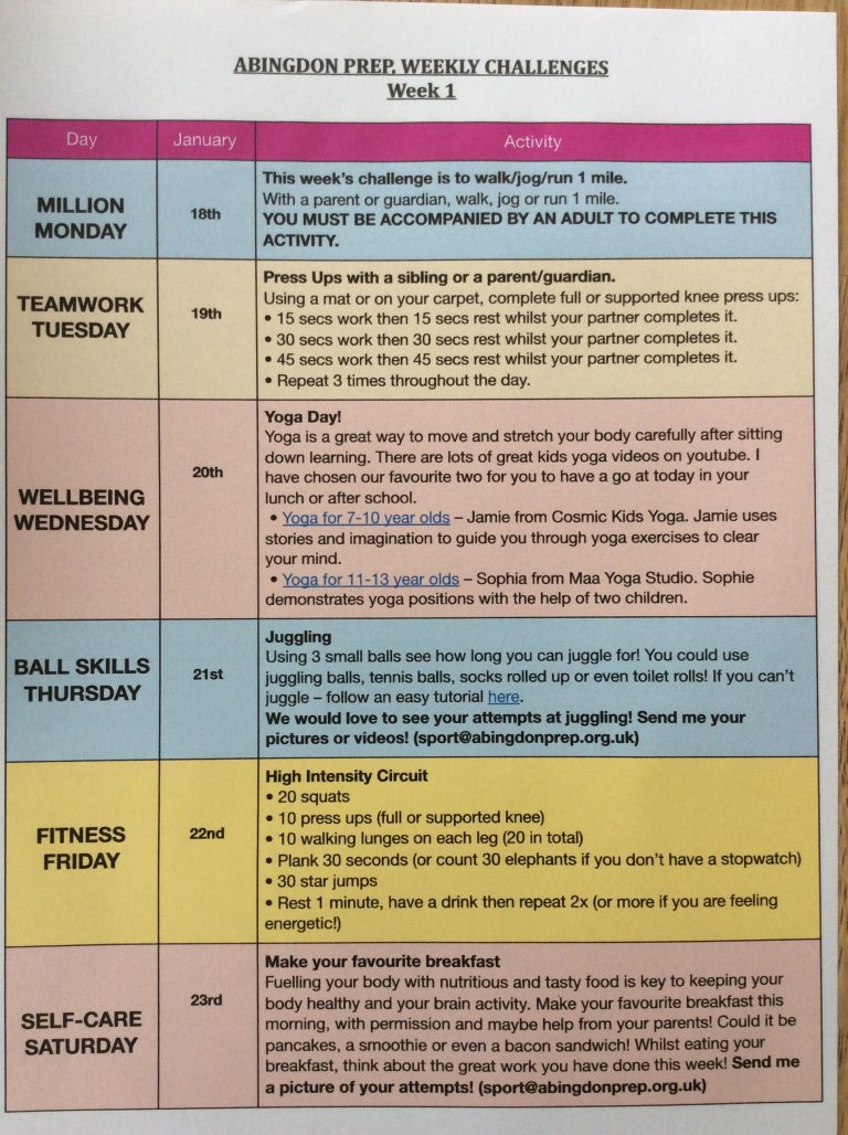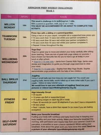 On a weekly basis the boys have been set different daily challenges in addition to their live Zoom circuits and ongoing activity logs. Million Monday was to walk, jog or run a mile, Wellbeing Wednesday was yoga day, Ball Skills Thursday was to learn to juggle and Self-Care Saturday required the boys to create a nutritious breakfast. Here are just a few pictures of their efforts!