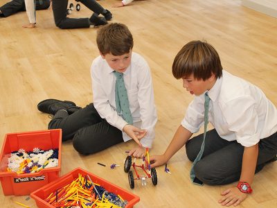 In the afternoon it was all K'NEX. Each team got a box full of rods, connectors and wheels to build cars to which they fitted different propulsion systems – electric and clockwork motors and rubber bands – and then complete various challenges: running down the middle of a marked track, stopping precisely in a square, and seeing how far their car went on just one rubber band.