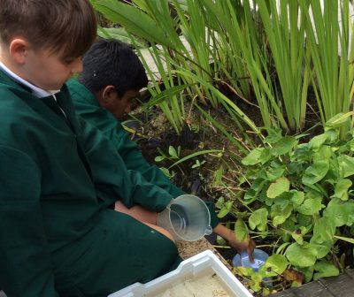 The new team of Science Ambassadors have continued to deliver an excellent series of Primary Science Club activities throughout this term. Favourites among participating primary school children from Marcham, Thomas Reade and Caldecott Primary Schools have been dissecting an eye and an amazing session of pond dipping in the rill outside the Yang Science Centre. Amongst the haul of interesting mini beasts were frog and newt tadpoles, water boatmen, damselfly larvae and leeches. After studying some of the creatures under microscopes they were all returned, unharmed, to their fantastic habitat in the rill.