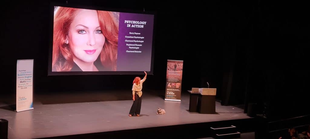 Last week, Lower Sixth psychology students attended the Psychology in Action event at Warwick Arts Centre, where we listened to a series of engaging lectures from leading psychologists. The talks covered a wide range of topics, such as how behavioural science can influence people’s decisions and how attention and concentration develop from childhood to adulthood, as well as some practical strategies for improving focus. In ‘This talk may cause side effects’ the speaker started with the story of a US Police officer who had apparently overdosed on Fentanyl, as it happens he hadn’t, but believed that he had. This belief was enough to cause him to collapse and go into respiratory failure before a colleague administered an antidote. This ‘Nocebo’ effect reflects the darker side of the placebo effect, explaining how our expectations of medications and drugs can sometimes cause us to experience negative symptoms. The final talk introduced us to ‘Mr Fur Potato’ (seen in the picture) to offer some light-hearted relief to the subject matter: “psychopaths” and what is meant by this term. Entitled ‘Is your teacher a psychopath?’, we were relieved to find out that teachers are at the top of people least likely to be psychopaths!