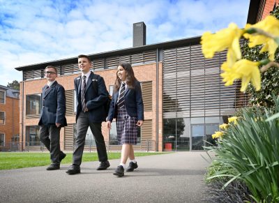 - Grey flannel trousers or Abingdon tartan skirt (knee-length or below)