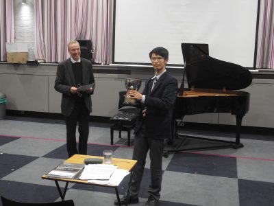 Professor Caird awarded 3rd place to Oliver Glover, 2nd place to Ryan Ng and 1st place to Walter Liu. He also awarded a special mention to Louis de Chazal who, though not quite making it into the top 3, was the only Lower School student present and played his bassoon admirably. Well done to all performers and many thanks to the staff and Professor Caird.