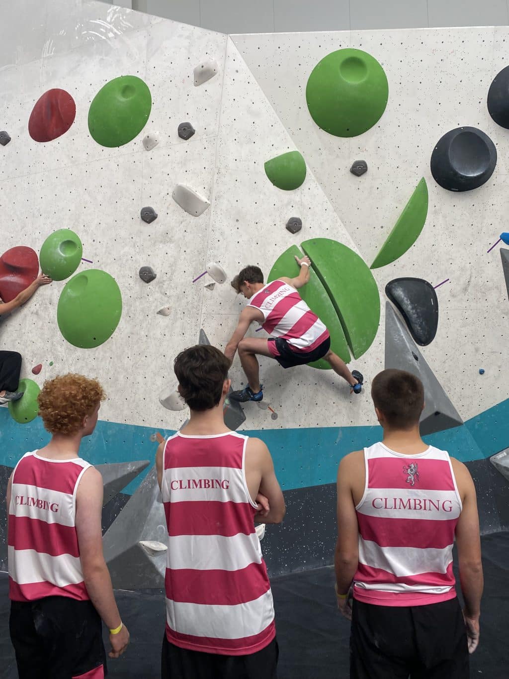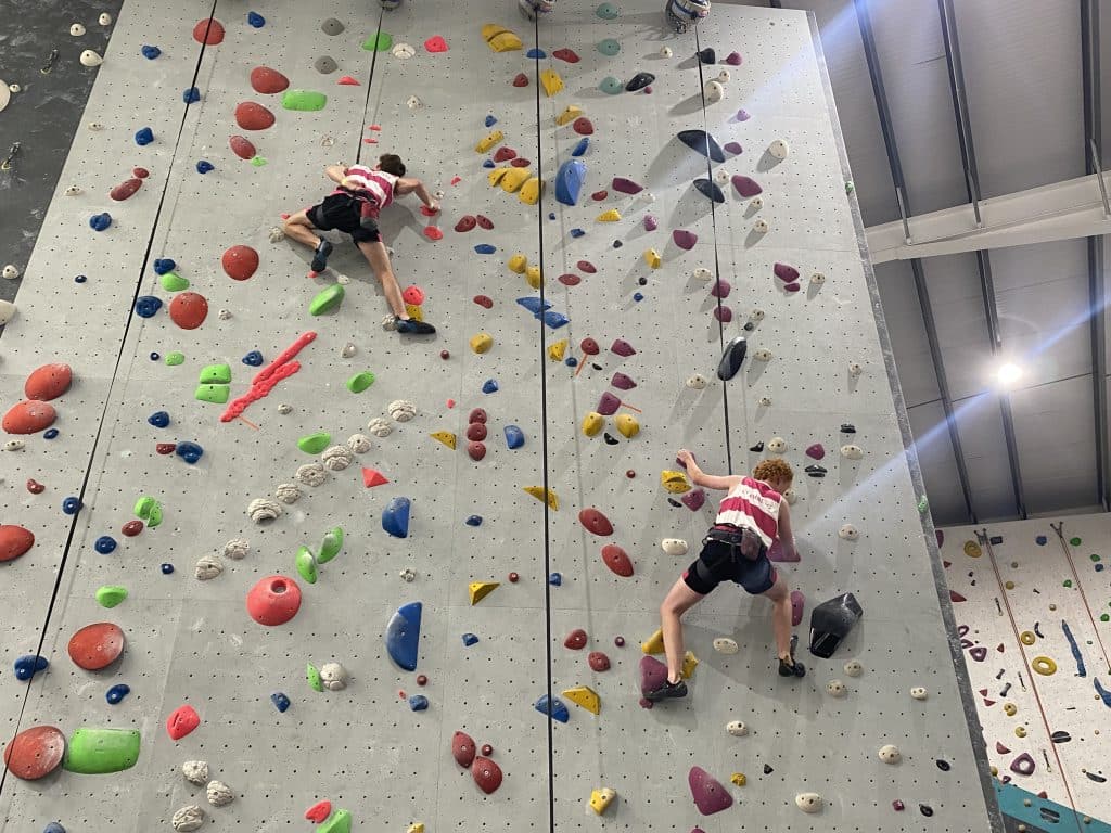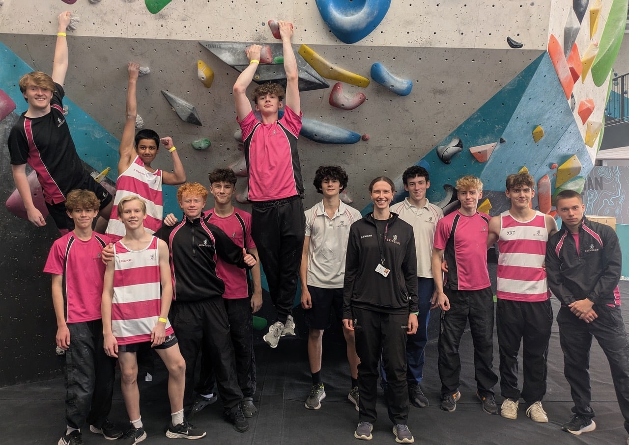 Abingdon School travelled to Parthian climbing wall in Southampton to take part in the Southern Schools Climbing Competition. In only a three hour window, 12 climbers tackled 15 boulders, six auto belay routes (on a 10+ meter wall), and several climbers working the three (extra difficult) lead routes. All students were excited for the challenge, having trained to build their aerobic capacity for the past six weeks, allowing them to climb harder for longer and with less fatigue. There was some impressive positive mental attitude, peer-support and persistence in the face of some tiny and terrific holds.