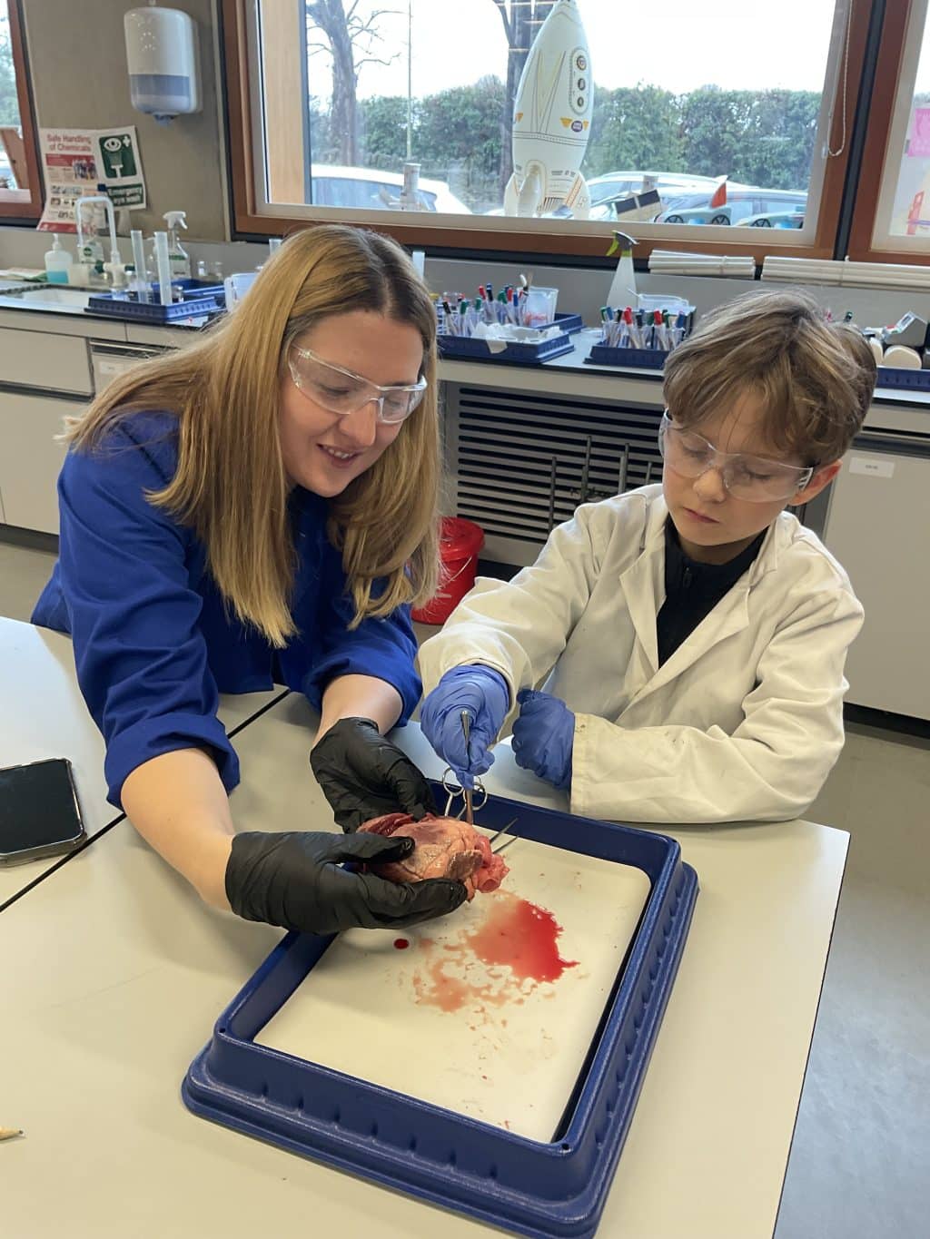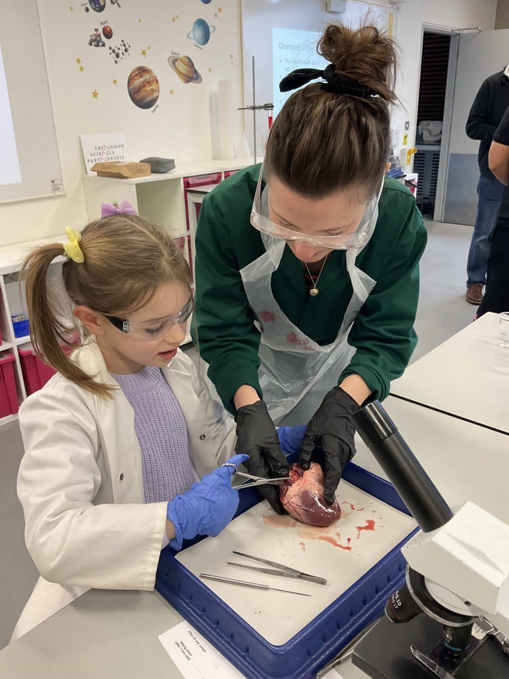 During our most recent session, Family Science Club focused on the theme of the healthy heart. The children took part in a sheep’s heart dissection, investigated how their heart rate changes during activity, and examined blood cells under a microscope. This engaging session gave our young scientists a hands-on opportunity to explore how the heart works and why it is vital for keeping us healthy.
