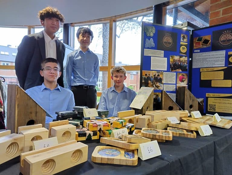 In the lead up to Christmas, our Young Enterprise team had great selling success at the various School Christmas Fairs they have attended. Team Arbo sold out of their upcycled products, made from old pallets and bottle caps, and manufactured in the School’s Design Technology Department. Having undertaken a comprehensive market survey, their products included coffee coasters, serving dishes, passive amplifiers, bird and bat boxes.